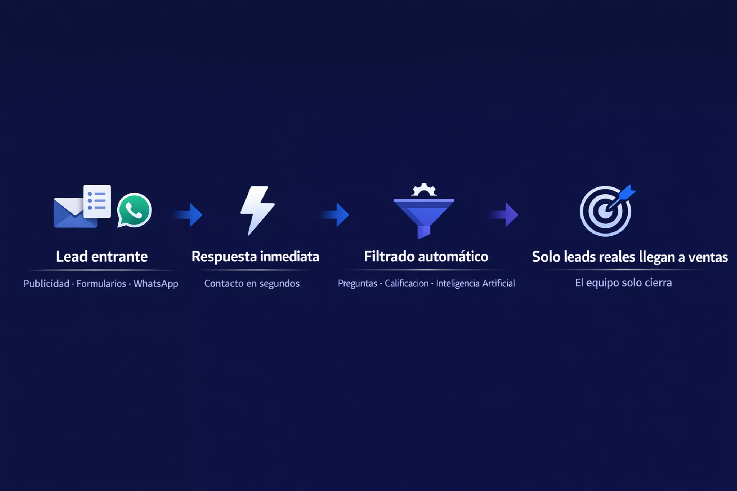 El sistema filtra intención y calidad antes de escalarlo a ventas.